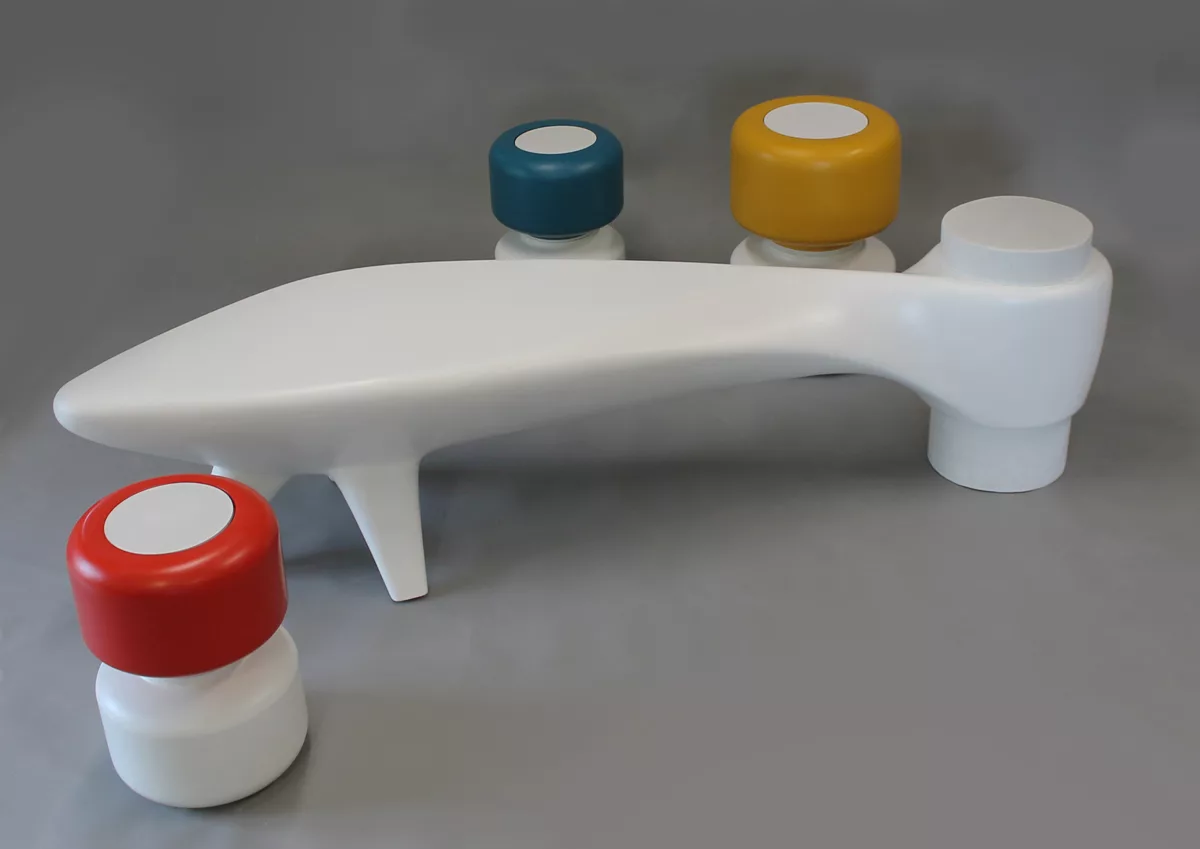 Faïence DESCRIPTION DU PROJET : C’est un travail sur l’objet tout en gardant cette ligne directrice du design sculptural, une forme tendue mais toujours avec une rondeur dans les angles, des formes organiques. L’équilibre est également un des sujets qu’ils aiment...