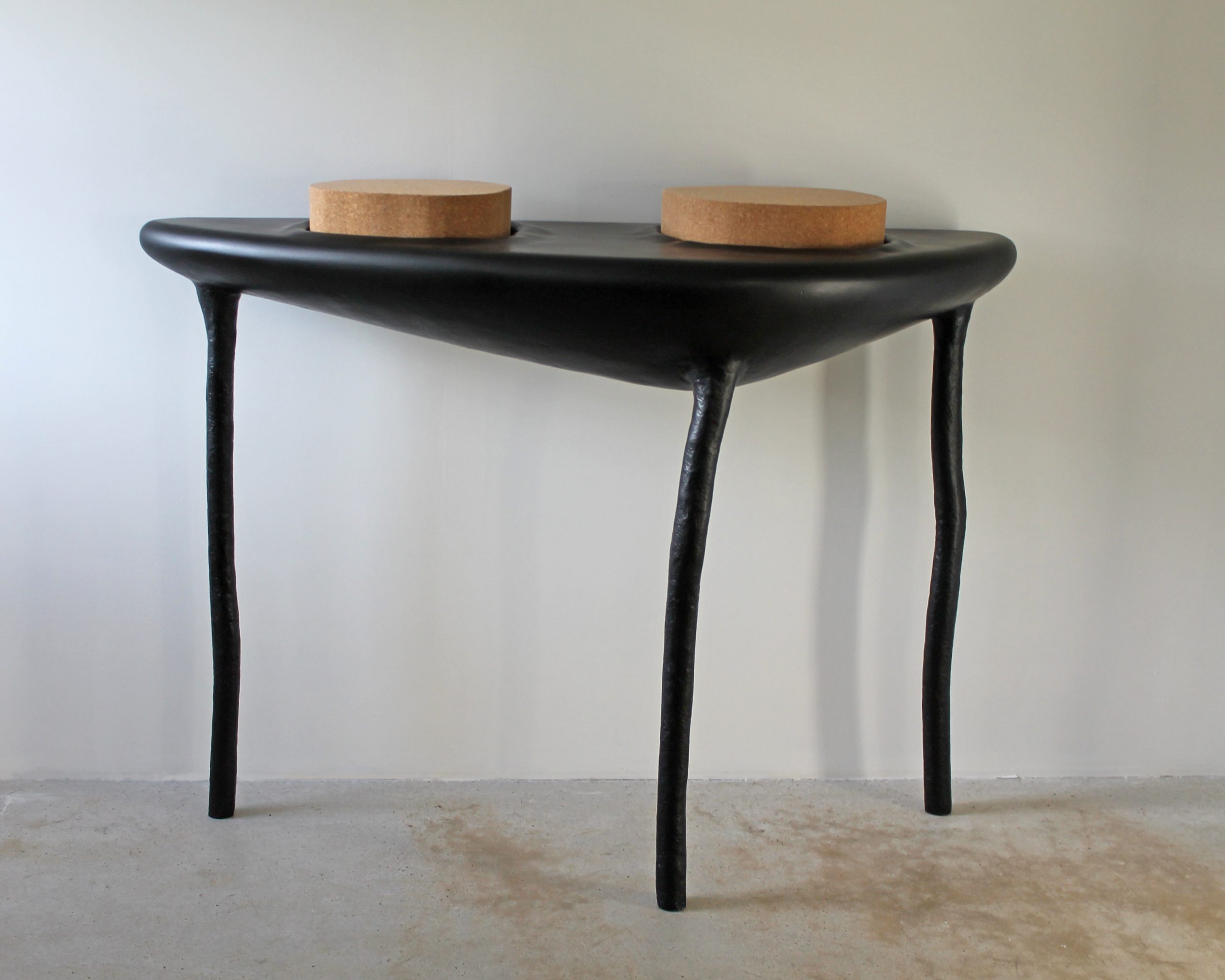 Cratère est un mobilier aux formes rondes, fluides, douces, un design organique. Il est inspiré des cratères de la lune, dans lesquelles viennent s’imbriquer des morceaux de chêne , de liège ou de marbre.