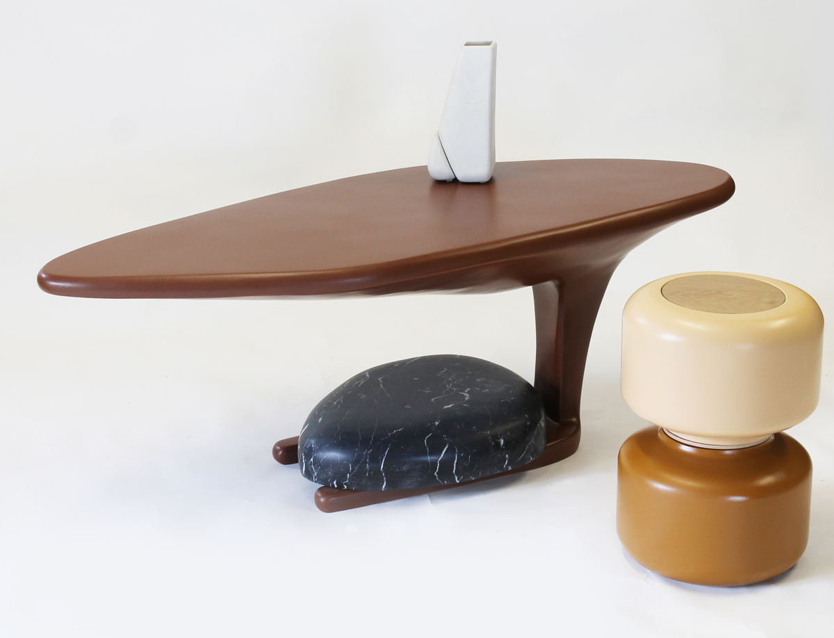 Faïence DESCRIPTION DU PROJET : C’est un travail sur l’objet tout en gardant cette ligne directrice du design sculptural, une forme tendue mais toujours avec une rondeur dans les angles, des formes organiques. L’équilibre est également un des sujets qu’ils aiment...