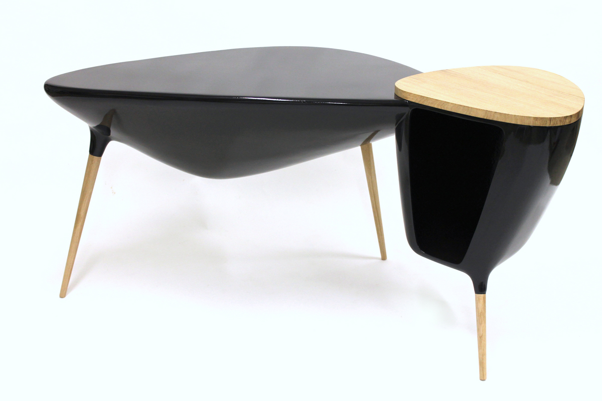 Tripode est une autre version de l’étendue du savoir-faire de Binome, c’est une finition laquée brillante pour ce bureau d’intérieur.C’est une forme tout en équilibre reprenant la pureté des formes organiques et l’alliance du bois et d’une finition vernis.