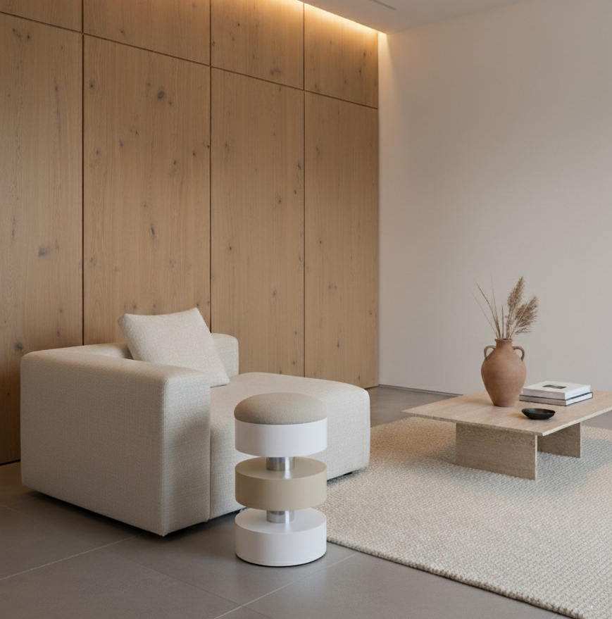 Le tabouret VILA est déclinable en table de chevet ou table d’appoint.